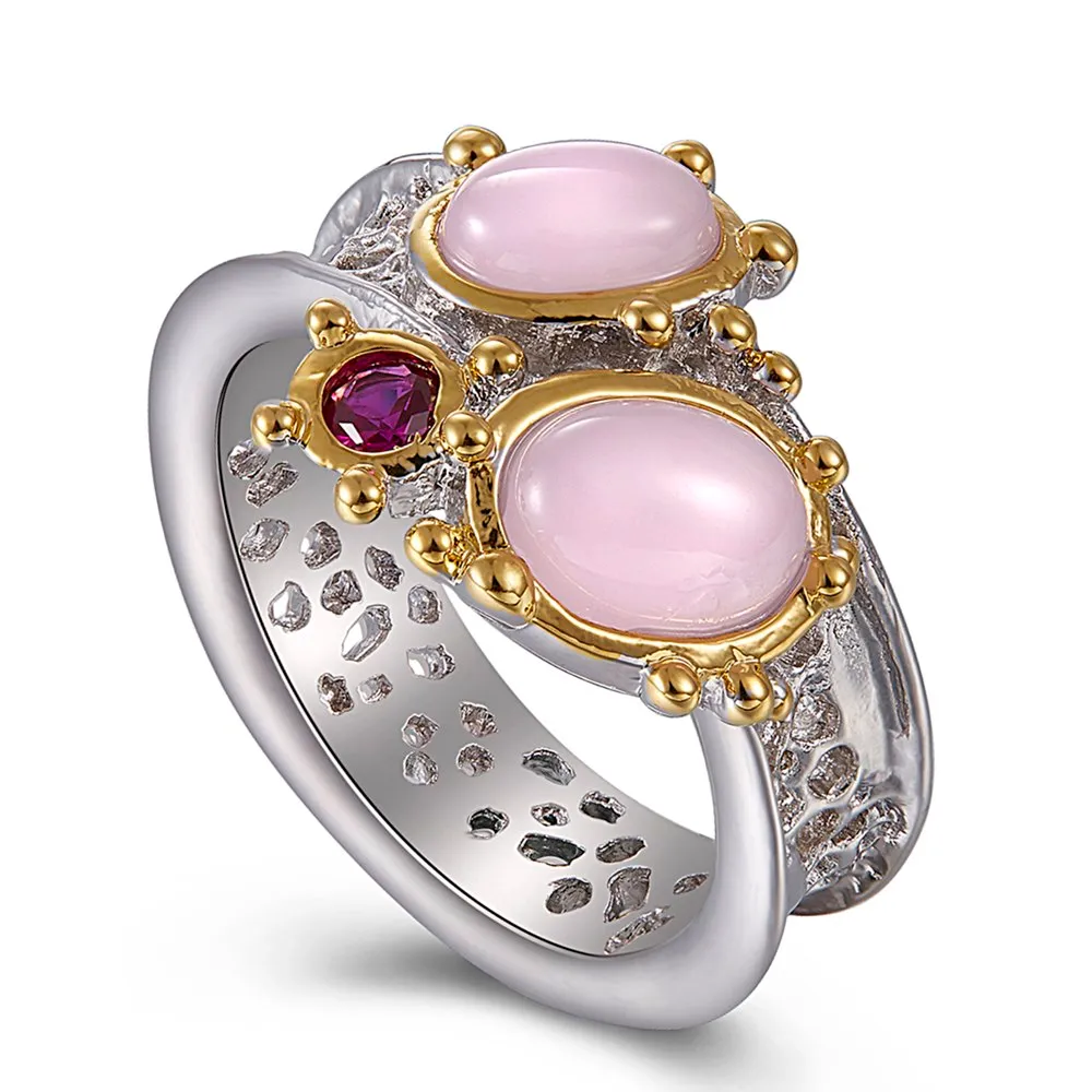 latest fashion ring oval pink opal stones luxury jewellery silver+gold 2 tone plated pretty finger rings for women
